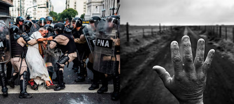 La obra de Bourbon se concentra en las marchas de jubilados frente al Congreso, atravesadas por reclamos de haberes mínimos, que rondan los $450.000, y por operativos policiales de alta intensidad. La imagen premiada condensó ese cruce entre reclamo social y respuesta estatal.