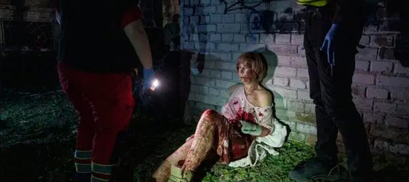 Valeria Syniuk (65) sentada cerca de su casa. Estaba durmiendo cuando un misil ruso destruyó el edificio de enfrente. Kiev, Ucrania. (World Press Photo 2026 /Evgeniy Maloletka /AP)