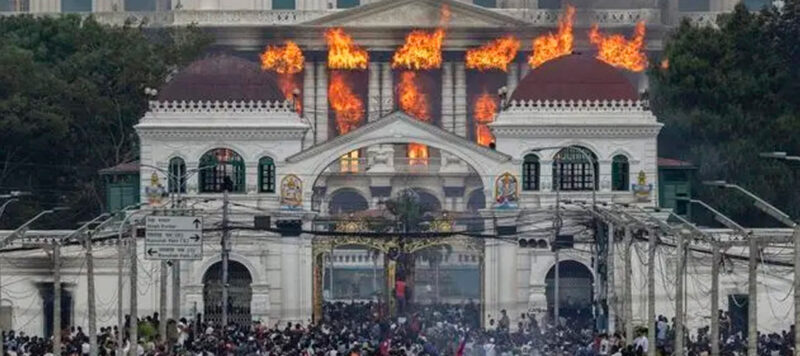 El Singha Durbar arde tras ser tomado e incendiado por manifestantes durante violentas protestas en Katmandú, Nepal. (World Press Photo 2026 /Narendra Shrestha /EPA):
