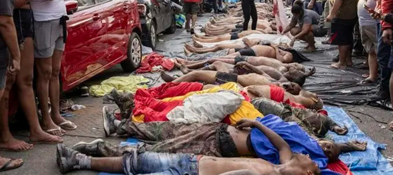 En octubre de 2025, una redada contra Comando Vermelho en Complexo do Alemão y Penha (Río), con 2500 agentes, dejó 122 muertos, en su mayoría afrobrasileños; sin forenses, la comunidad cargó con sus muertos. (World Press Photo 2026 /Eduardo Anizelli /Folha de S.Paulo):