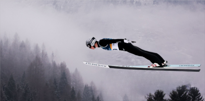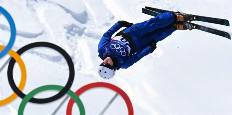 Atrapada entre la gracia y la gravedad, entre el control coreografiado y la tranquila capitulación ante las leyes de la naturaleza, una foto de Anastasiya Andryianava, nacida en Bielorrusia, del Equipo de Atletas Neutrales Individuales (atletas individuales rusos y bielorrusos), compitiendo en el entrenamiento de Esquí Acrobático Aéreo en el octavo día de los juegos (14 de febrero) en el Parque de Nieve de Livigno, parece poner a prueba los límites de la levitación humana. Aislada en el espacio, ingrávida pero acelerando, como si la alquimizara el crujir de la velocidad y el aire helado en una forma aerodinámica pura, su suspensión llena de suspense recuerda la pintura «aeropittural» de 1939 del artista italiano dálmata del siglo XX Tullio Crali, Antes de que se abra el paracaídas , que también fusiona las geometrías de la forma y el vuelo.