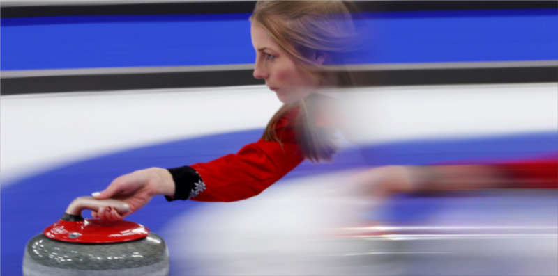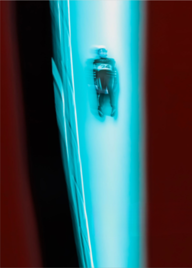Transformada por la lente de un fotógrafo en líneas borrosas que aceleran tras el empuje cuidadosamente calibrado de su piedra de curling pulida, la suiza Briar Schwaller-Huerlimann, compitiendo en un partido de dobles mixtos contra Canadá el cuarto día de los Juegos, parece haberse vuelto una con la propia roca. Sus conciencias se han fusionado. Tal fusión de materia en mente y viceversa se hace eco de la fluidificación de la masa y el movimiento que logró la escultura de bronce de Umberto Boccioni, Formas únicas de continuidad en el espacio (1913) , que difumina los límites: una obra tan filosófica como física.