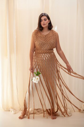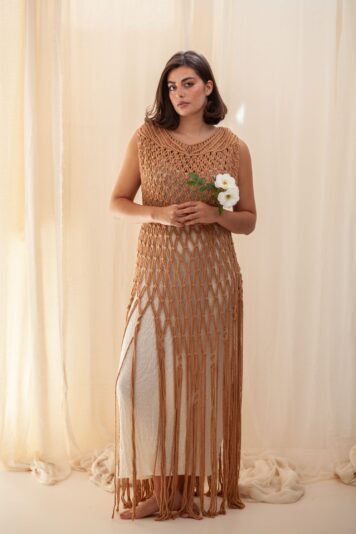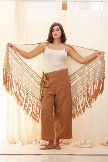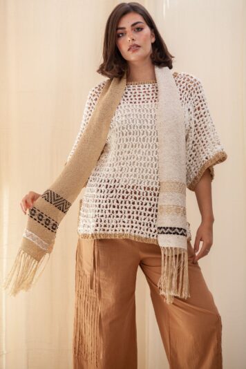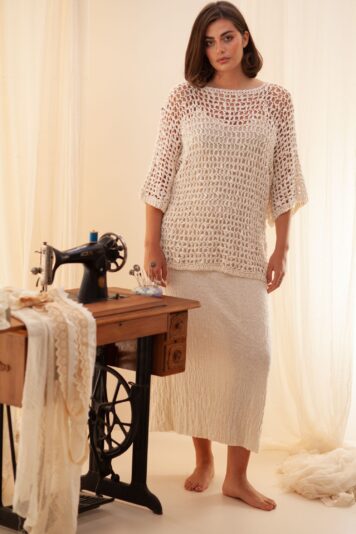 Victoria cuenta que el ámbito también incide en la propuesta hoy. “Me fui adaptando a otras cuestiones como por ejemplo trabajar con lo que ofrece el lugar. En invierno trabajo con una hiladora a mano de Capilla del Monte. Usa lana de ovejas y de llamas que se crían en el Valle de Punilla y que no tienen tintura artificial. Son lanas cien por cien naturales. En verano compro algunos materiales industriales y, principalmente, algodón agroecológico”. Apasionada del diseño, no sigue las olas momentáneas de la moda. “Me inclino más por lo que me ofrece el lugar y por lo natural. La paleta de colores es neutra con marrones, crudos, grises. Los tonos de las lanas naturales. En verano puede haber otras tonalidades porque compro hilos industriales pero están también dentro de esa paleta, algún rosa pálido por ejemplo. Todo siempre cercano a los colores de la tierra”.